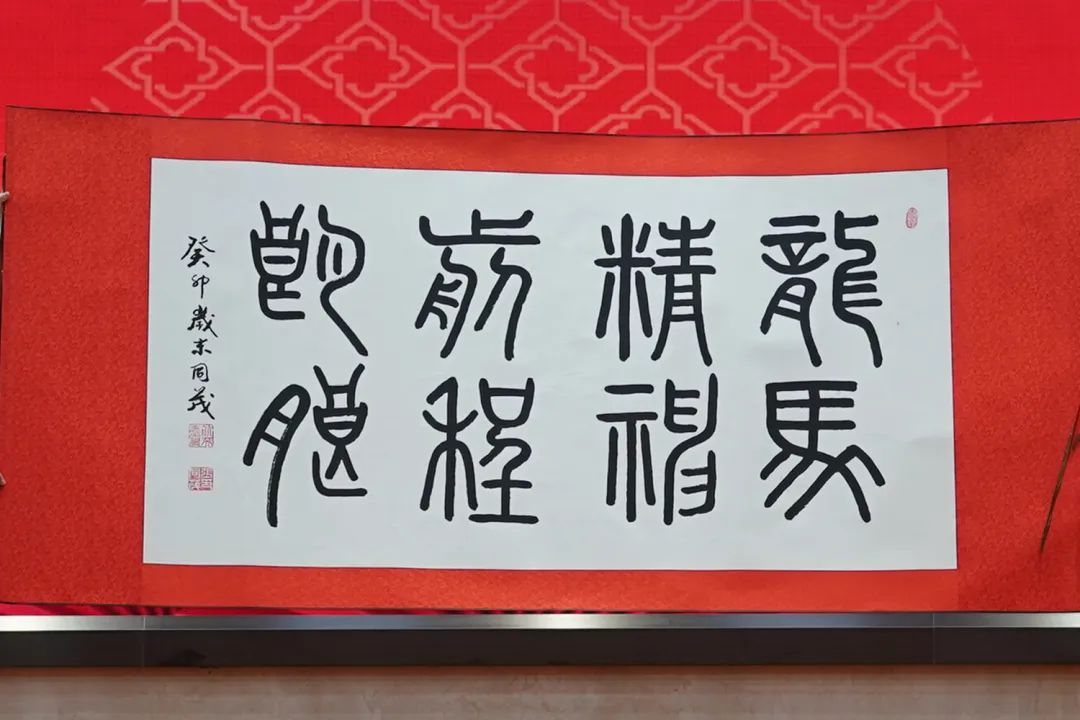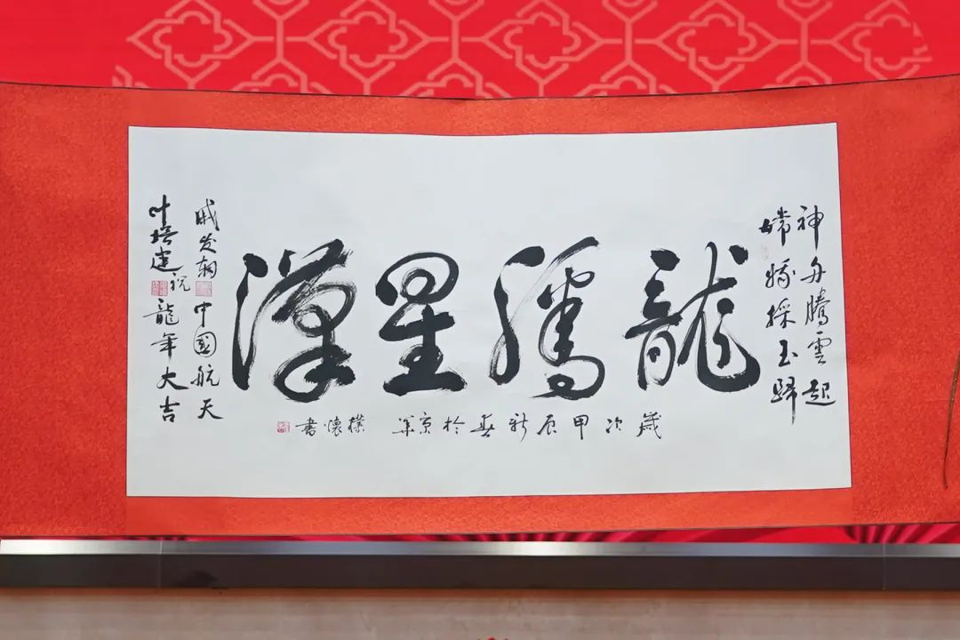 ▲ 现场展示91吃瓜网 老同志创作的部分2024年迎新春书画作品