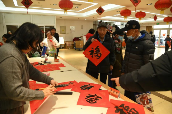 情况通报后,开展了迎新春送福送春联主题活动,老年大学书法老师及书法爱好者现场为老同志们挥笔送福,现场充满节日的喜庆氛围。(文/张一鹤)